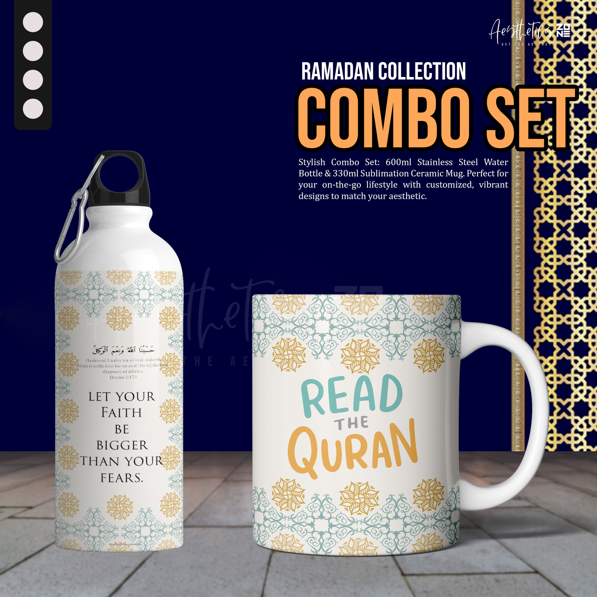 Start your day with purpose. The Read Quran mug inspires peaceful moments, while the Let Your Faith Be Bigger Than Your Fears bottle serves as a daily reminder to stay strong, hopeful, and connected to your faith—wherever life takes you. 🌙✨